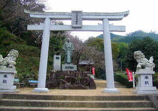 飛行機神社 二宮忠八は1891年(明治24年 ライト兄弟の飛行機より16年前)に日本で初めて動力つき飛行実験に成功したものの、人を乗せることができる飛行機をライト兄弟が実現したことを知り、飛行機開発から離れる。