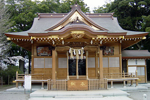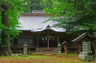 参道は国道125号現道に面しているが、境内は奥まった場所にあるため発見しにくく、巨樹林立する樹叢に、長大な参道が通り、奥部に社殿を構えていて、社務所や目立った境内社はなく、樹叢と社殿による素朴な構図を楽しむことができる。